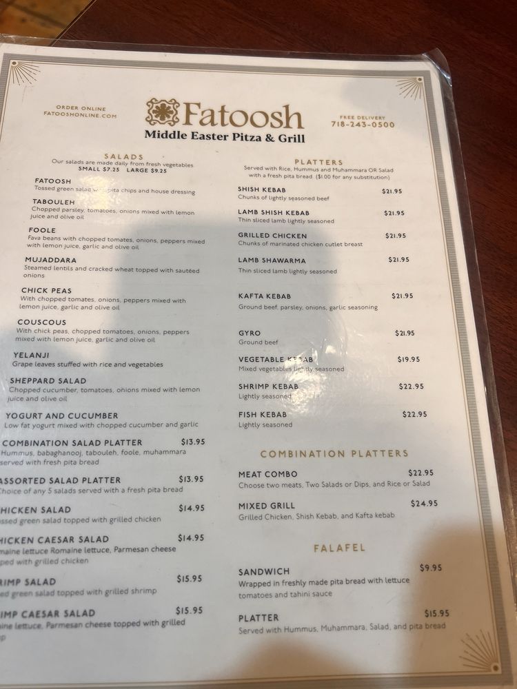 At Fatoosh Pitza & Grill, we take pride in serving authentic Middle Eastern cuisine with a modern twist. Nestled in Brooklyn, our vibrant eatery specializes in delicious pizzas and mouthwatering sandwiches, utilizing only the freshest ingredients. Our commitment to quality is evident in our generous portions and flavorful offerings, such as the perfectly seasoned grilled chicken and vibrant vegetable dishes. Whether you’re dining in or ordering takeout, our menu has something for everyone, including vegan options. With a welcoming atmosphere and attentive service, Fatoosh Pitza & Grill is your go-to destination for a satisfying meal that feels both indulgent and healthy.